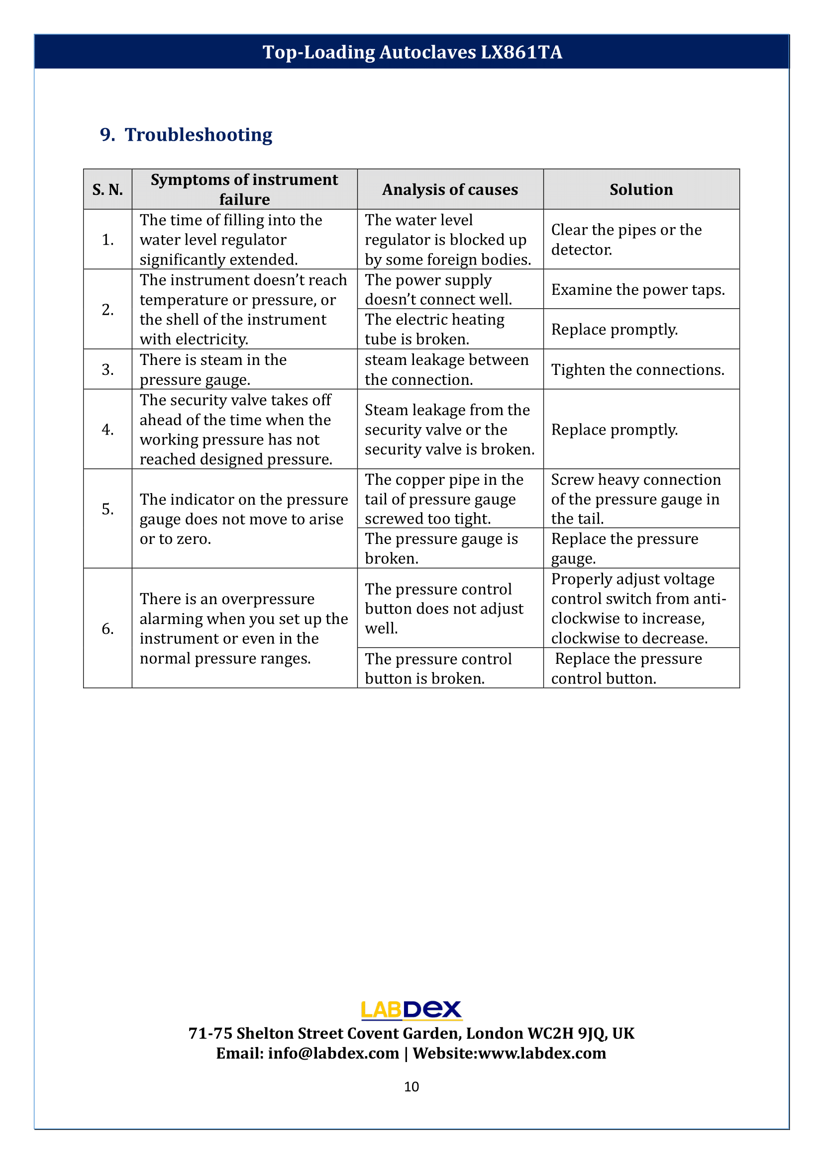 Top-Loading Autoclaves LX861TA Manual | Labdex