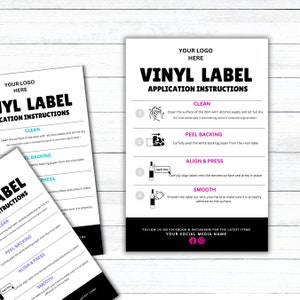 Vinyl Decal Application Instructions Card: Printable Small Business ...