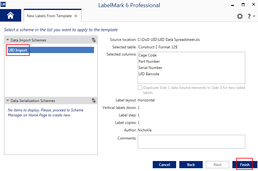 Using Data Import Schemes in LabelMark 6 to save file, location and ...