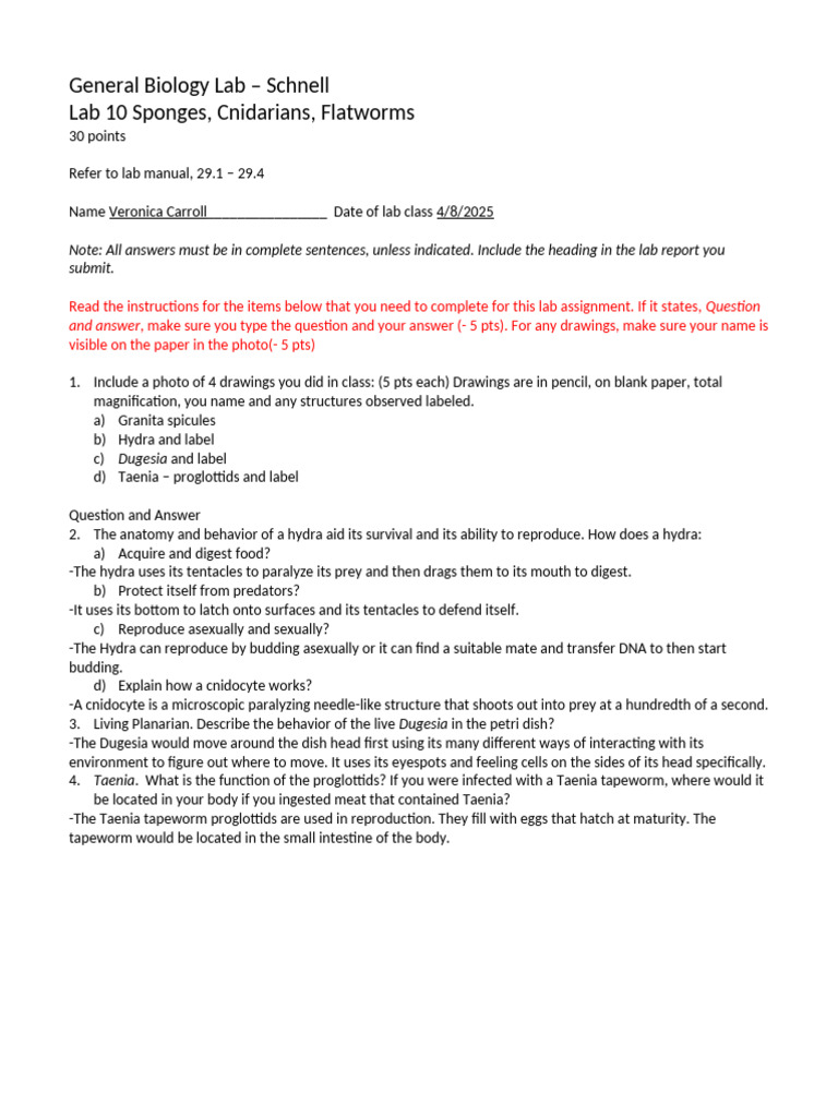 Lab 10 Invertebrates Sponges sp25 | PDF