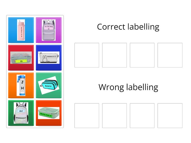Pick up the items which are labelled correctly and drop them into the ...