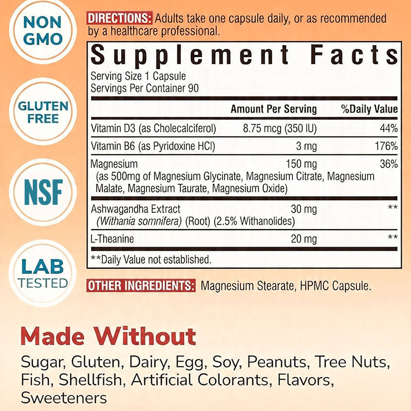 Magnesium Glycinate 3-in-1 250 mg Capsules with Vitamin B6 Ashwagandha ...