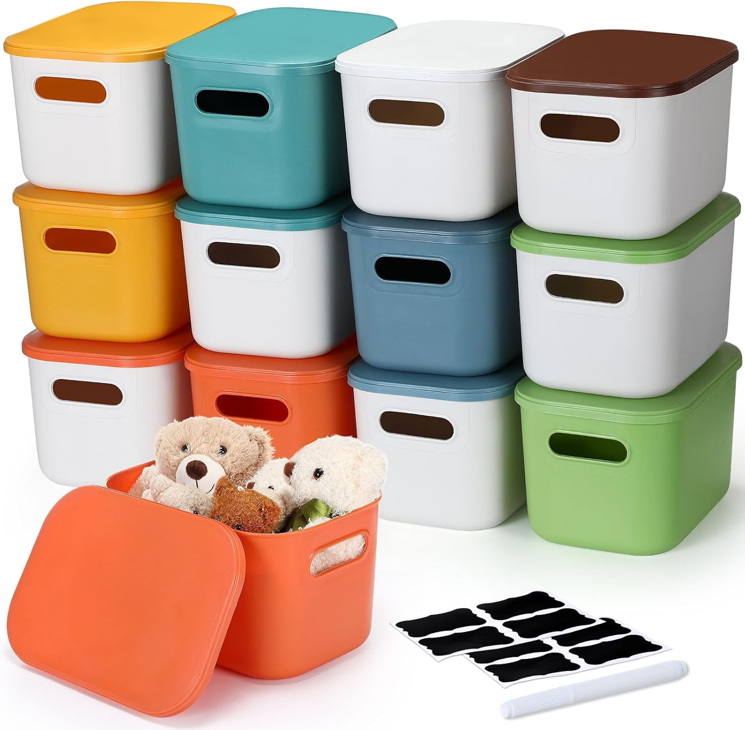 12 Pack 12 Pack 7 Quarts Plastic Storage Bins Stackable Baskets with ...