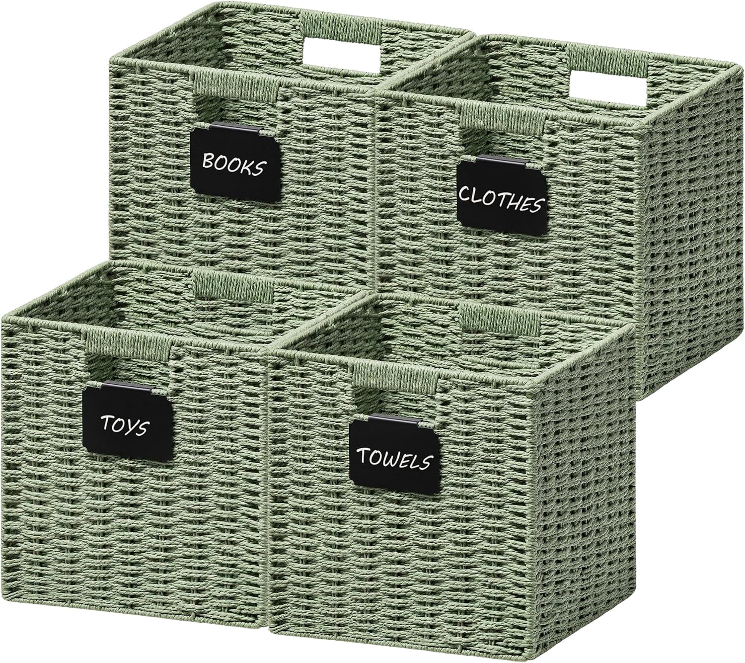 4 Pack Small Wicker Basket, 9×9 Storage Cubes with Label, Foldable ...