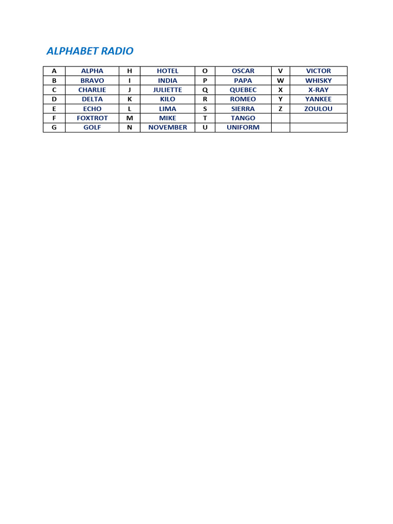 Radio Transmission Alphabet at Bruce Moreno blog