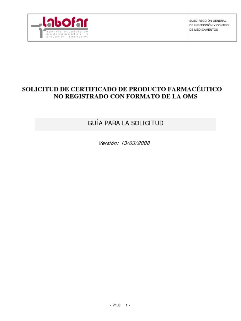 Labofar - Solicitud de Certificado de Producto Farmacéutico No ...