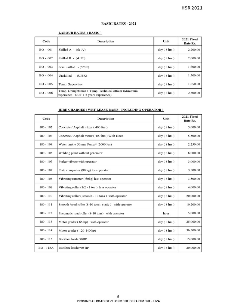 Labour Rates (Basic) Code Description Unit 2021 Fixed Rate Rs | PDF ...