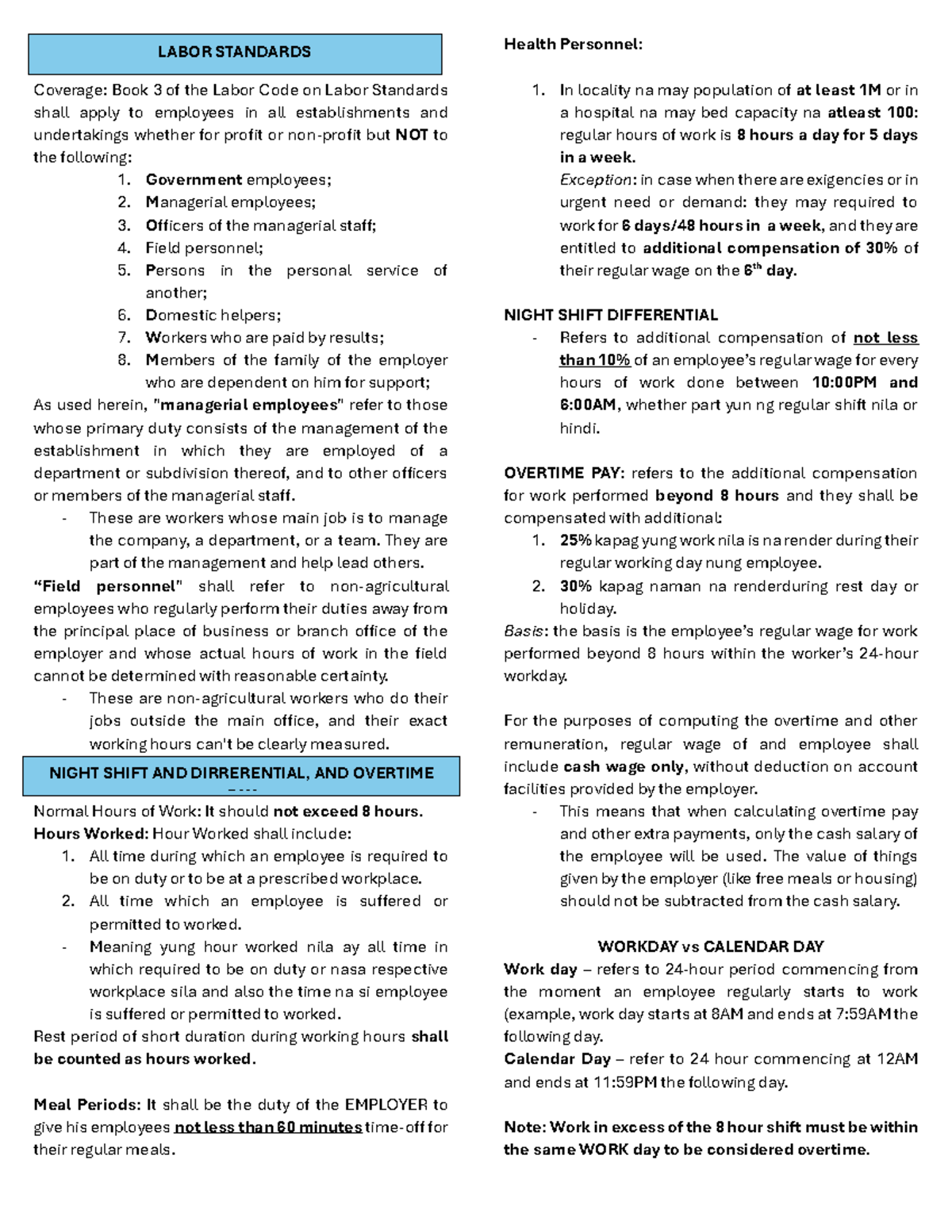 Labor CODE Summary - LABOR CODE Labor Standards - minimum requirements ...