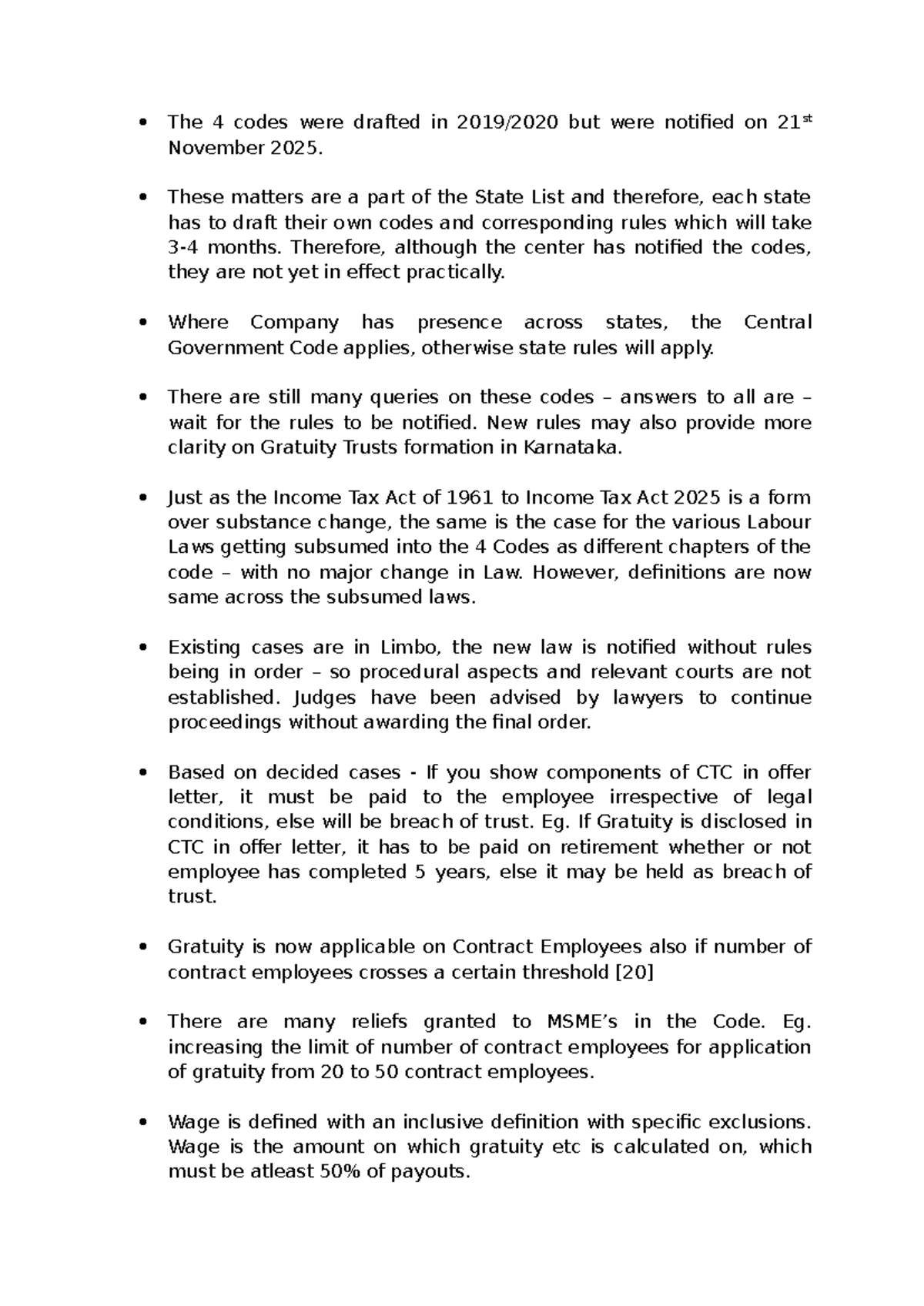 New Labour Codes - effective from 21st November 2025 - SW India