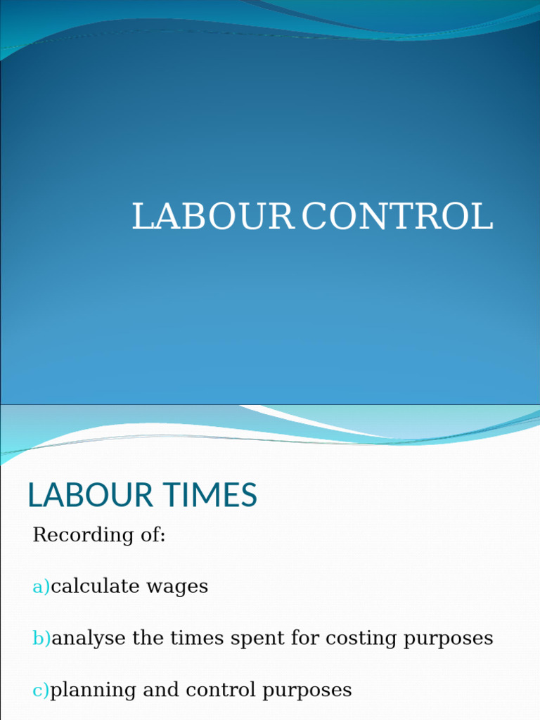 Topic 7 - Labour Control - Labour Control The second element of ...