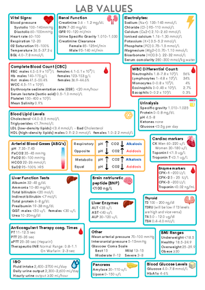 Laboratory Values Cheat Sheet: BMP, CBC, CMP, and More - Studocu