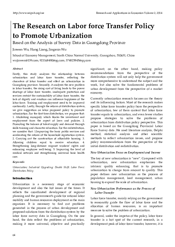 (PDF) The Research on Labor force Transfer Policy to Promote ...