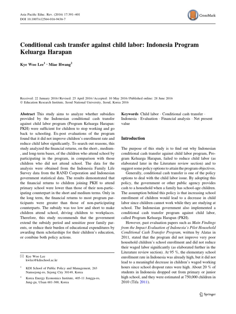 Conditional Cash Transfer Against Child Labor Indonesia Program ...