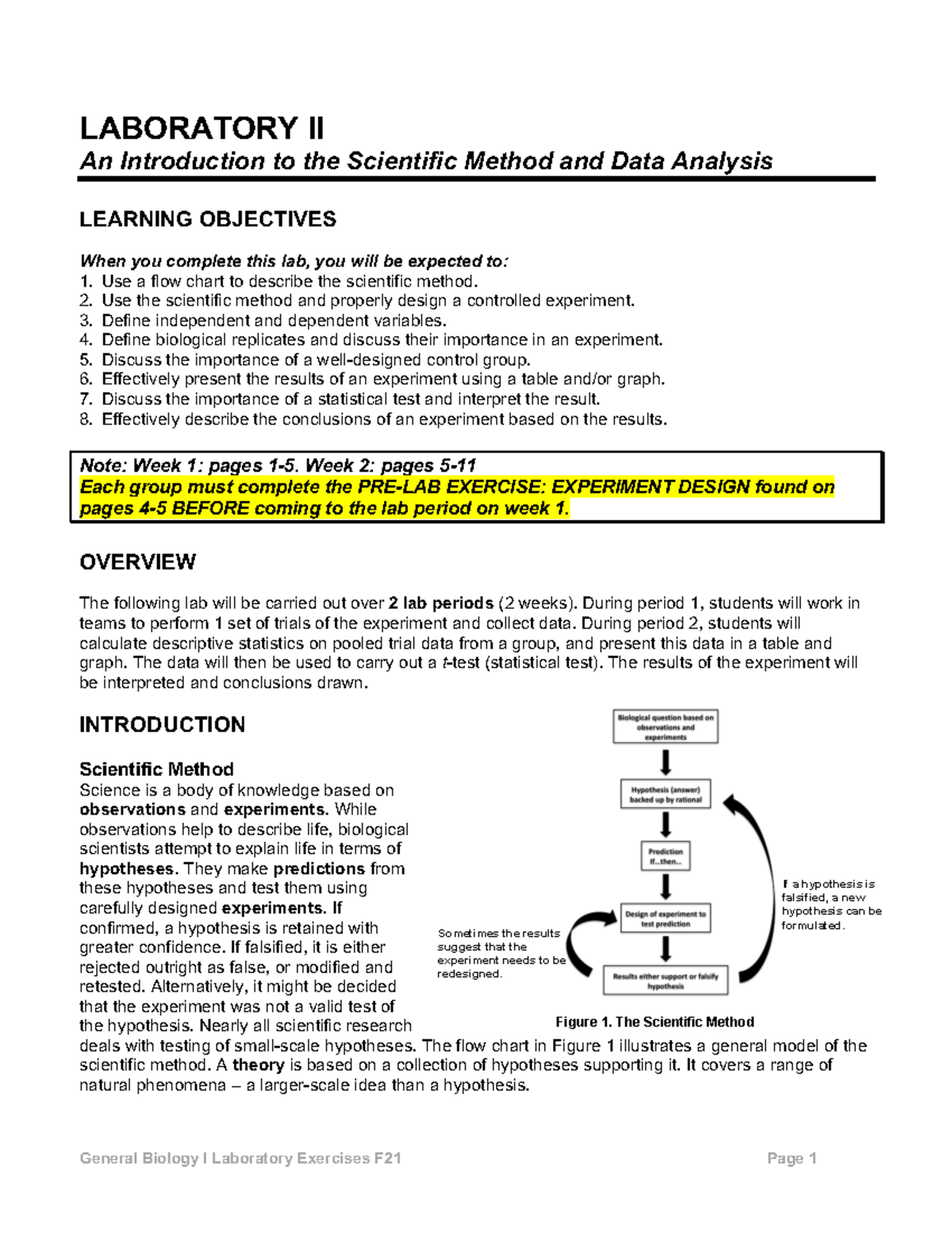 Lab Introduction - LABORATORY EXERCISE # 9 THE SCIENTIFIC METHOD ...