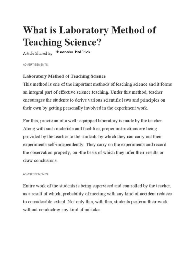 Teaching Using Laboratory Method | PDF | Inquiry Based Learning ...