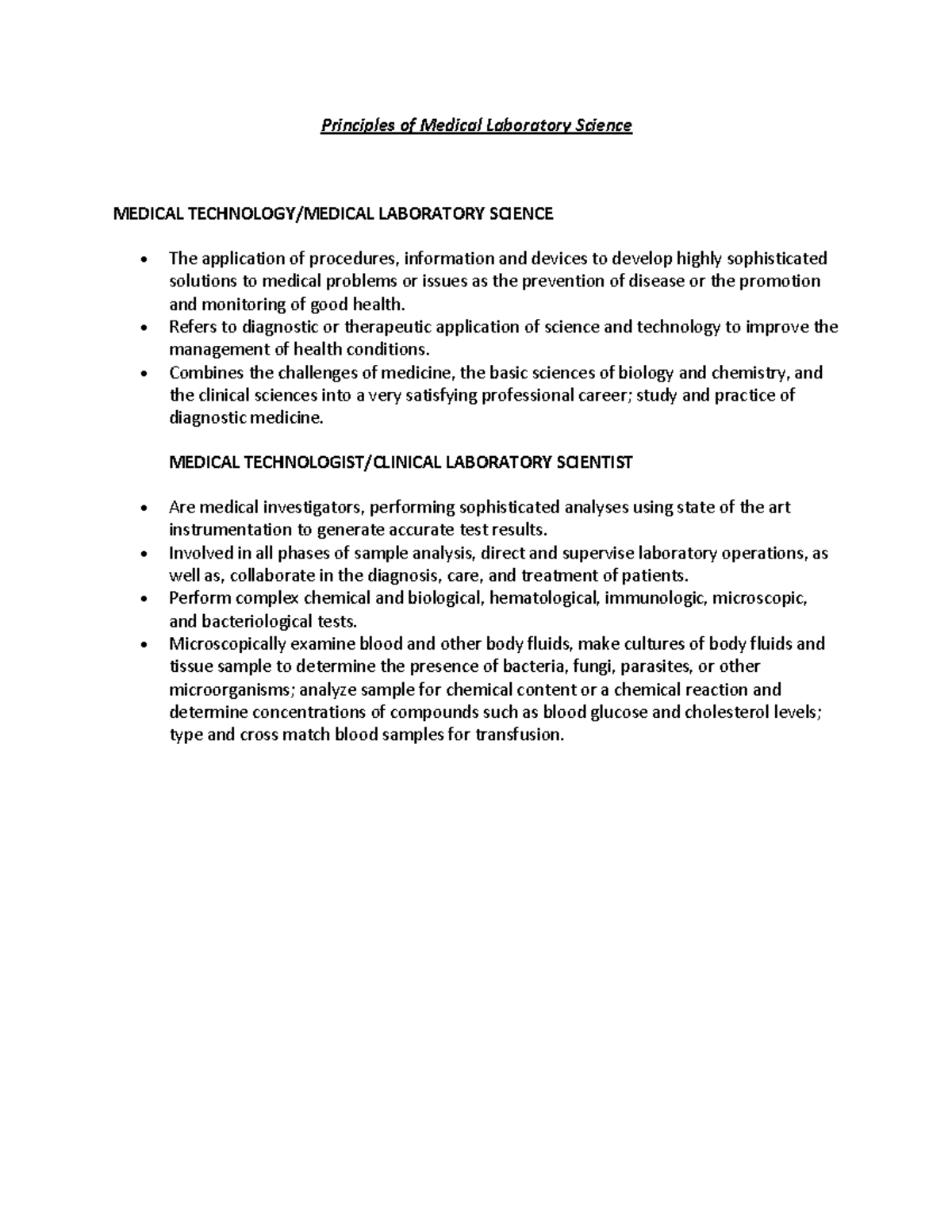 Principles OF Medical Laboratory Science Lesson 1 - PRINCIPLES OF ...