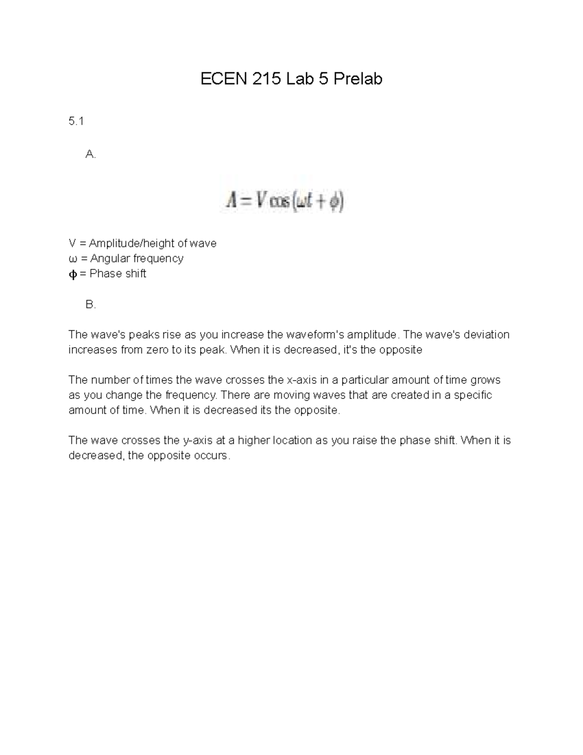 ECEN 215 Lab 5 Prelab: Wave Properties & Multisim Analysis - Studocu