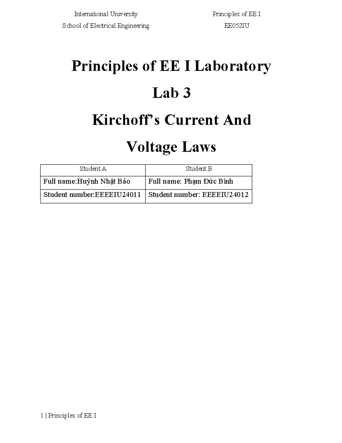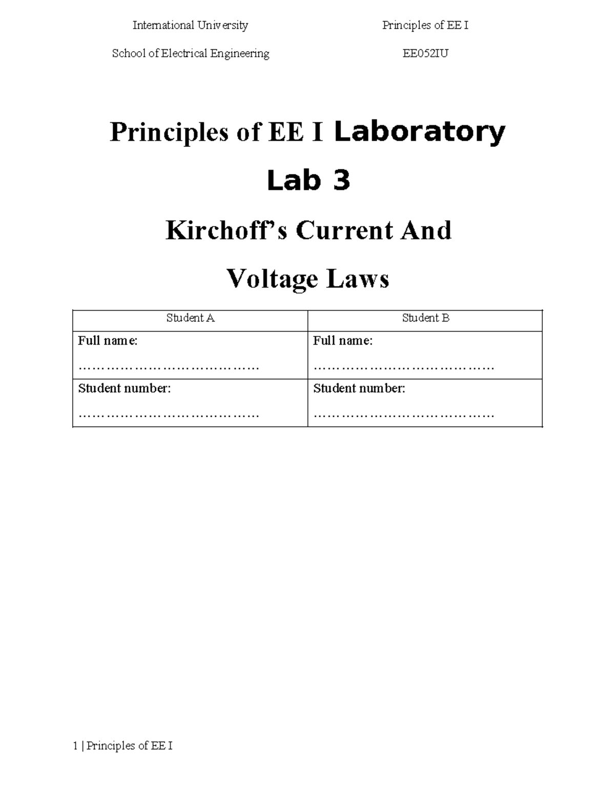 EE052IU - Principles of EE I Lab 3: Current and Voltage Laws - Studocu