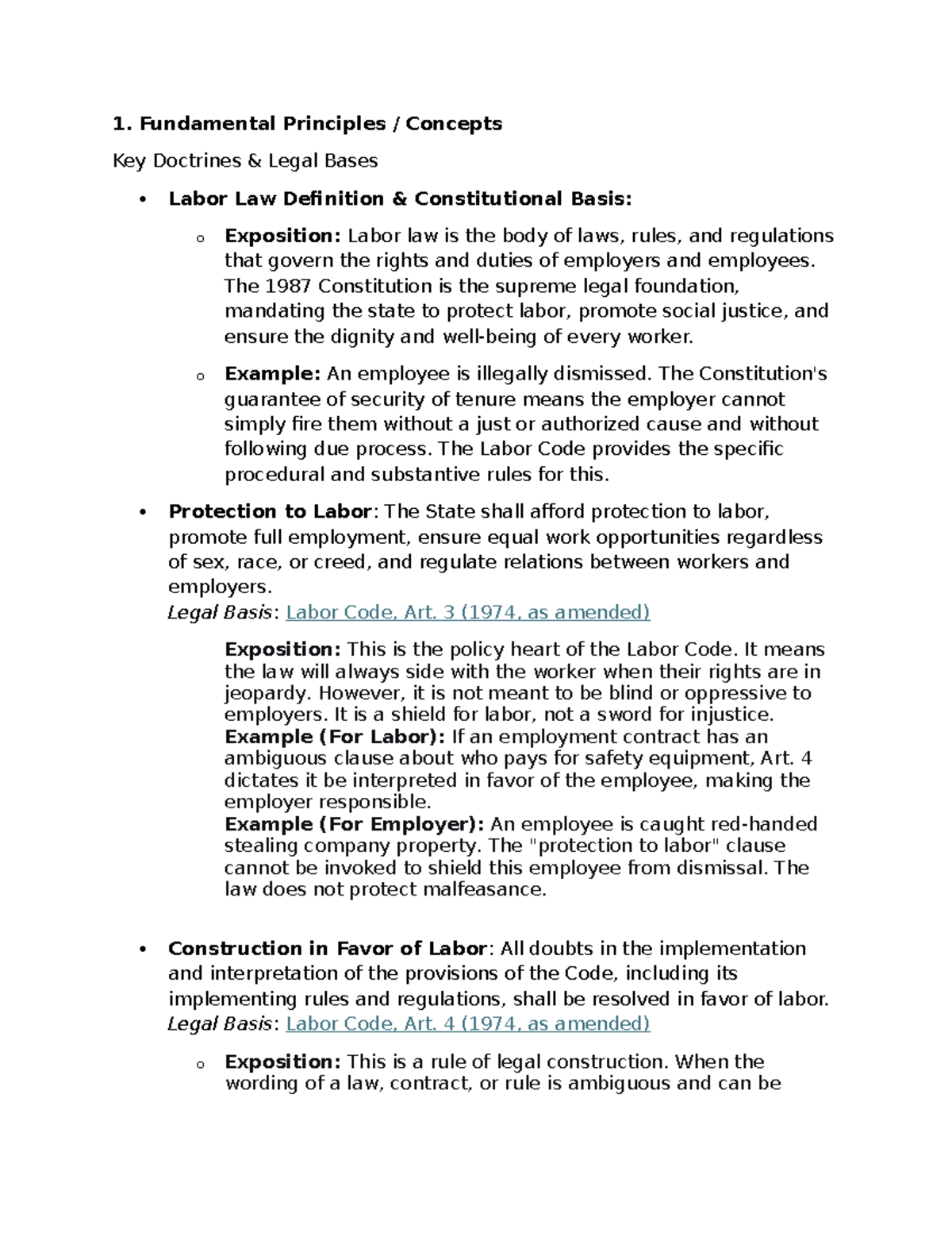 Labor Law Fundamentals: Key Principles & Doctrines (Course Code: Lab ...