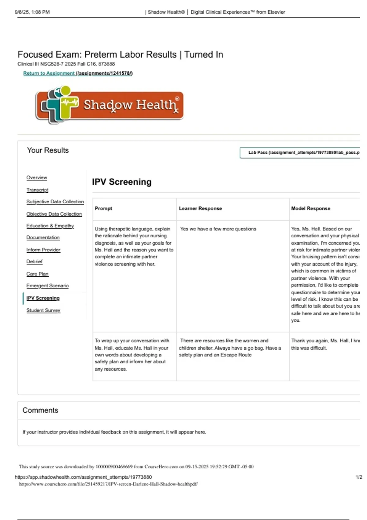 Clinical III NSG Fall C16/ NSG 528 | Shadow Health® Focused Exam ...