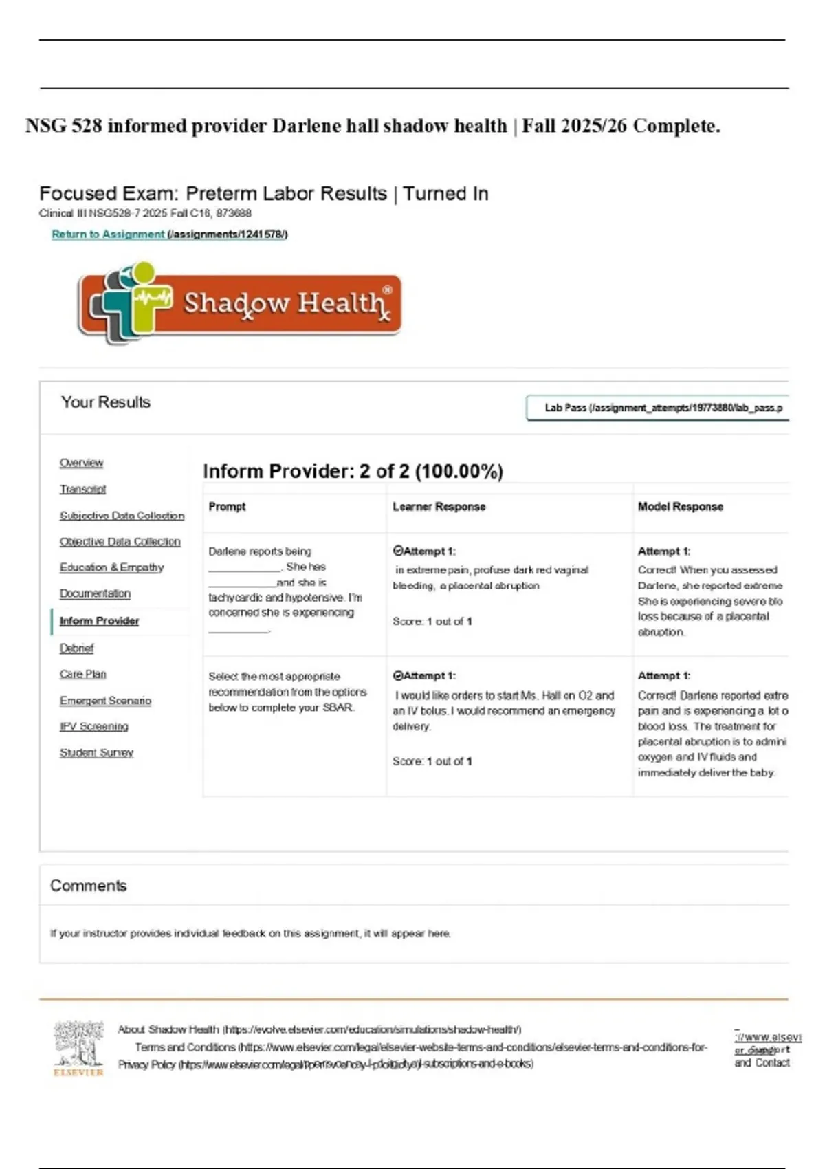 NSG 528 informed provider Darlene hall shadow health | Fall 2025/26 ...