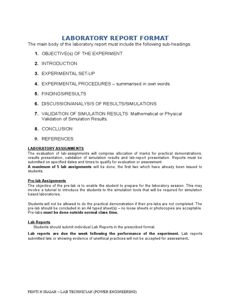 Laboratory Report Format: The Main Body of The Laboratory Report Must ...