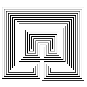 A square labyrinth. Choose the right path to get into the center of the ...