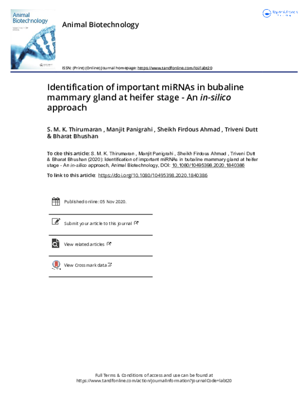 (PDF) Identification of important miRNAs in bubaline mammary gland at ...