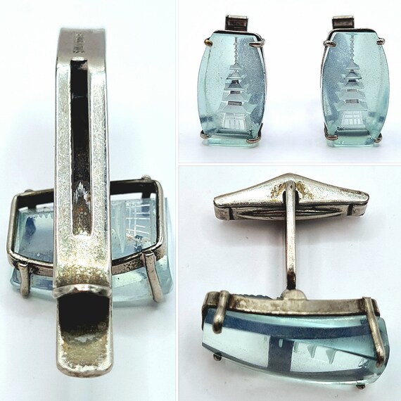 Vintage BEAUTIFUL BiG and BoLd Silver & Blue Lucite S… - Gem