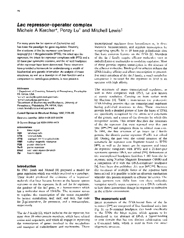(PDF) A closer view of the conformation of the Lac repressor bound to ...