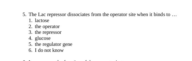 5 the lac repressor dissociates from the operator site when it binds to ...