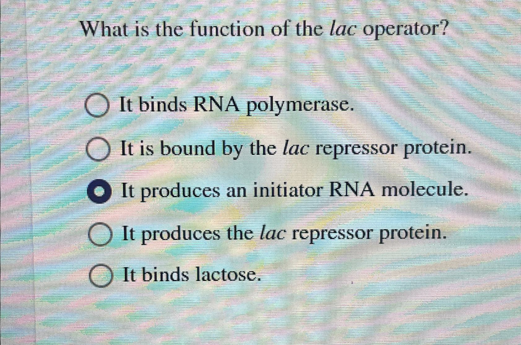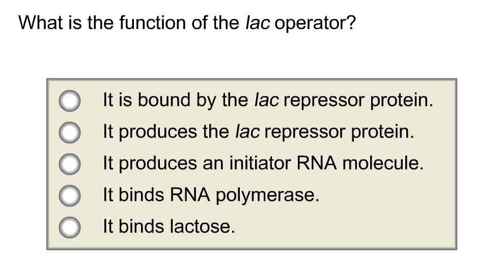 Solved What is the function of the lac operator? O O O O O | Chegg.com