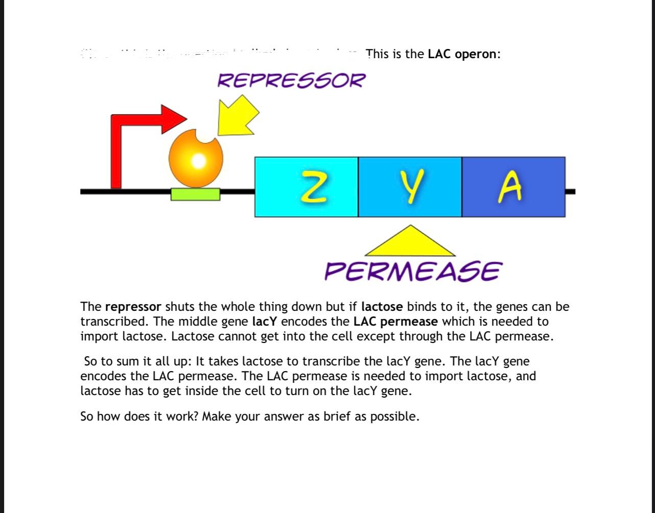 Solved This is the LAC operon: REPRESSOR 2 У A PERMEASE The | Chegg.com