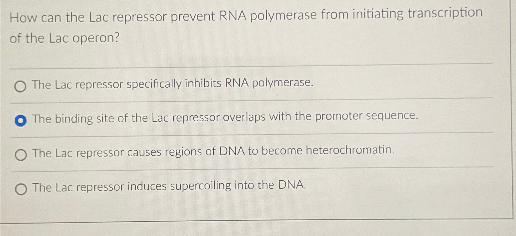 Solved How can the Lac repressor prevent RNA polymerase from | Chegg.com