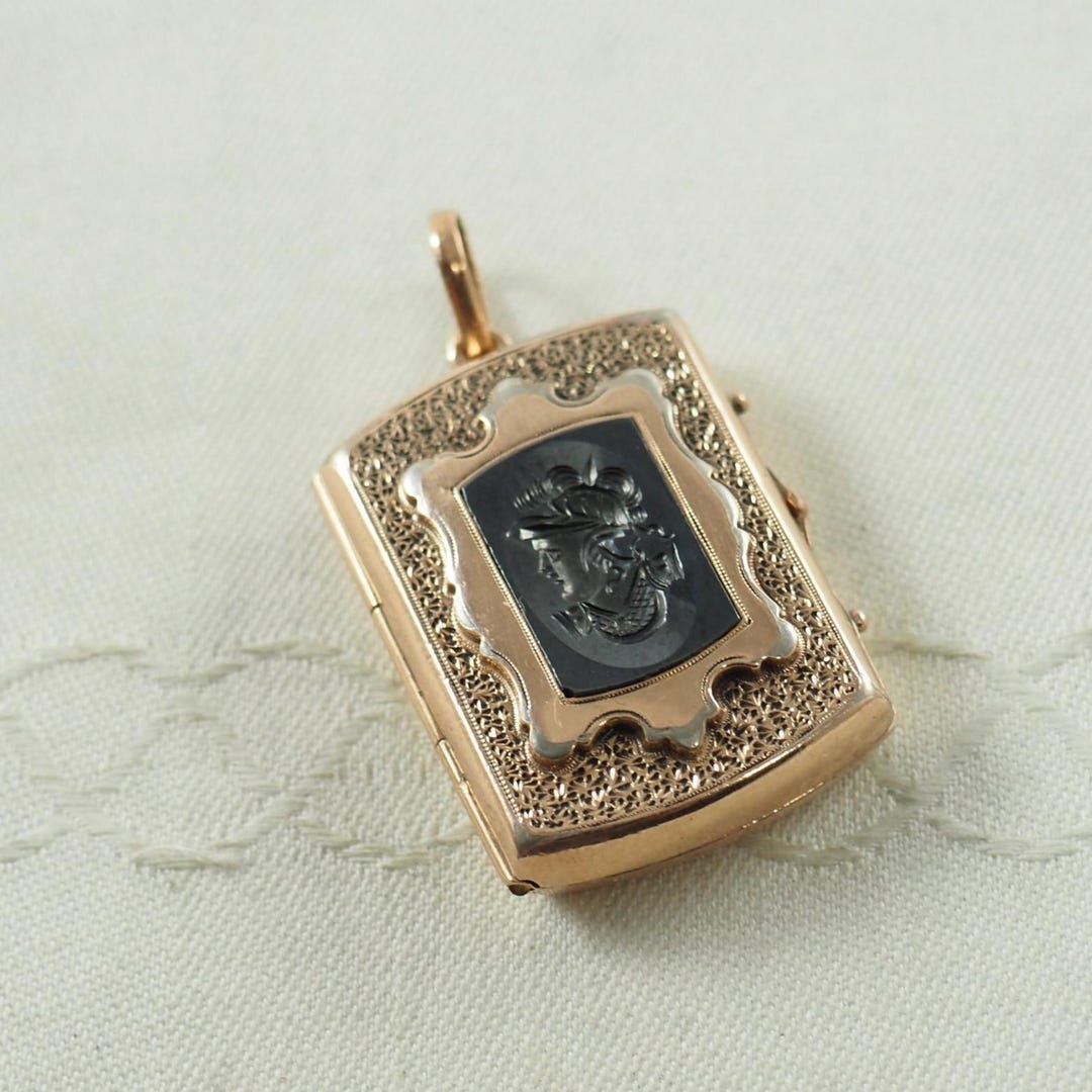 Antique Victorian Gold Filled Locket With Obsidian Warrior Intaglio ...