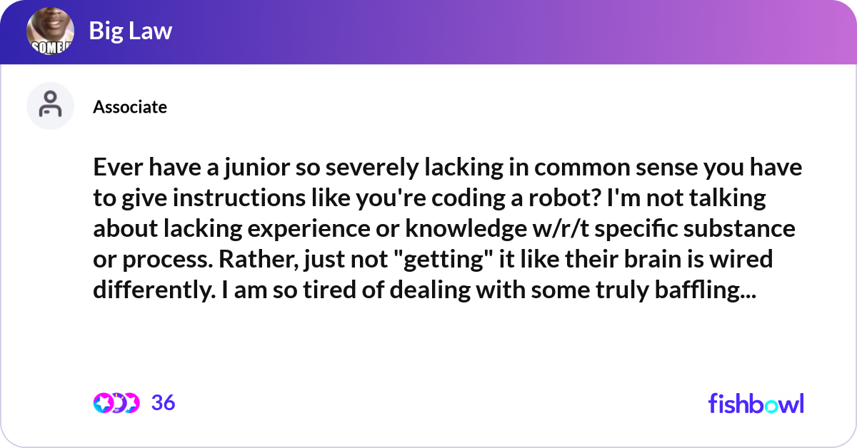 Ever have a junior so severely lacking in common s... | Fishbowl