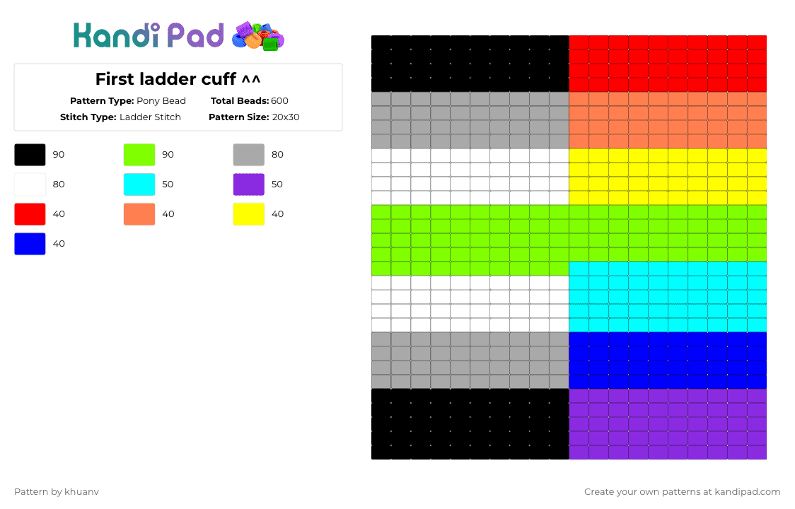 First ladder cuff ^^ Pony Bead Pattern - Kandi Pad | Kandi Patterns ...