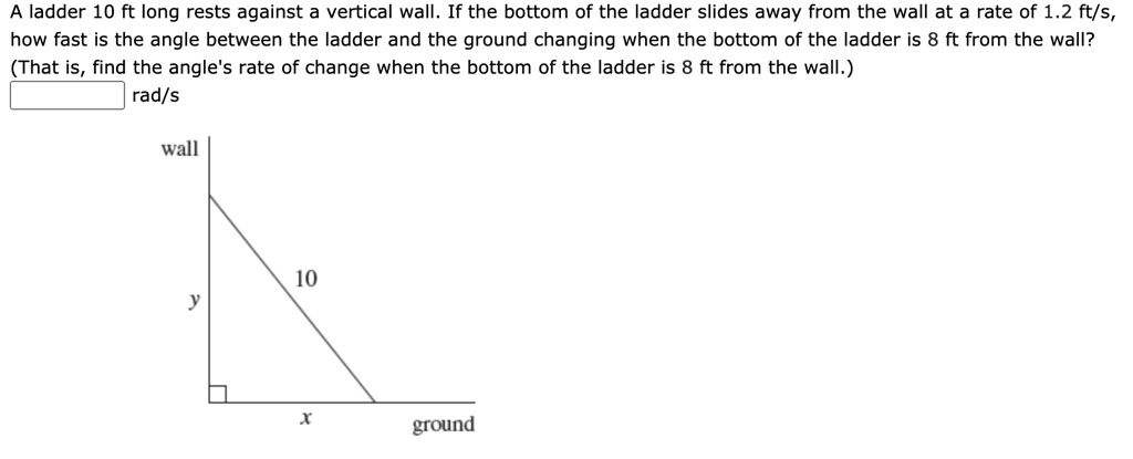 Solved: A 10 foot ladder is sliding down a wall (against which it is ...