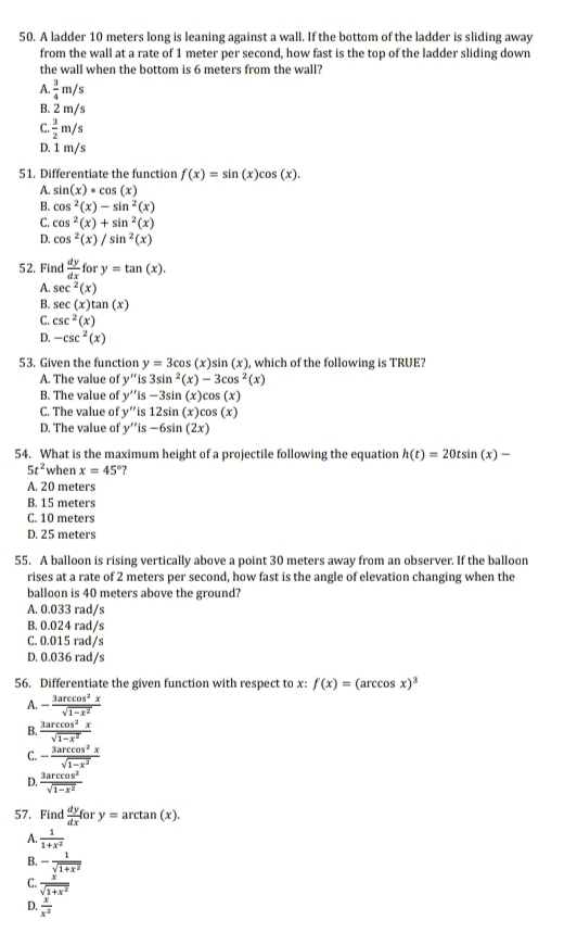 Rate of Change of Ladder Height Calculus Trigonometric Application ...