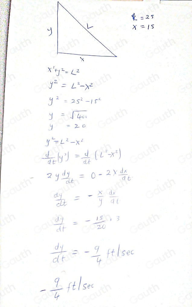 Find Length of the Ladder Given Related Rate of Change of Sliding ...