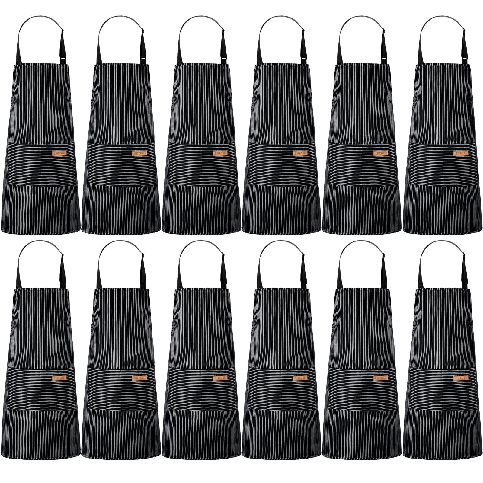 12 Cotton Aprons For Women Men With Pockets Soft Adjustable Bib Stripe ...