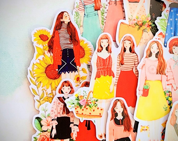 Hand Drawn Girl Sticker Set/ Japanese Fashion Decorative Lady Sticker ...