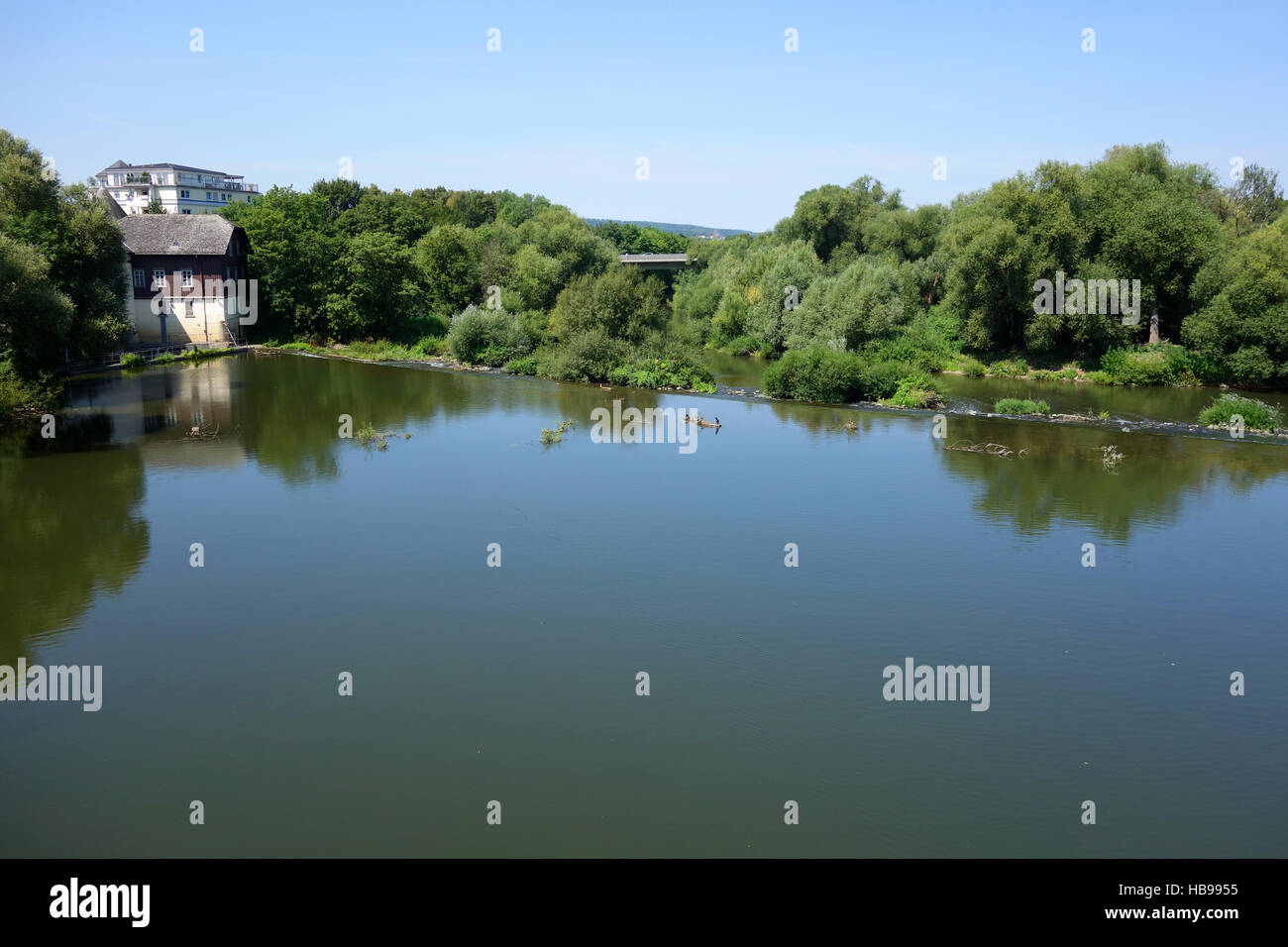 The Lahn river near Geilnau, Germany, a picturesque waterway flowing ...