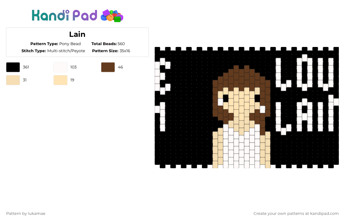 Serial Experiments Lain Pony Bead Pattern - Kandi Pad | Kandi Patterns ...