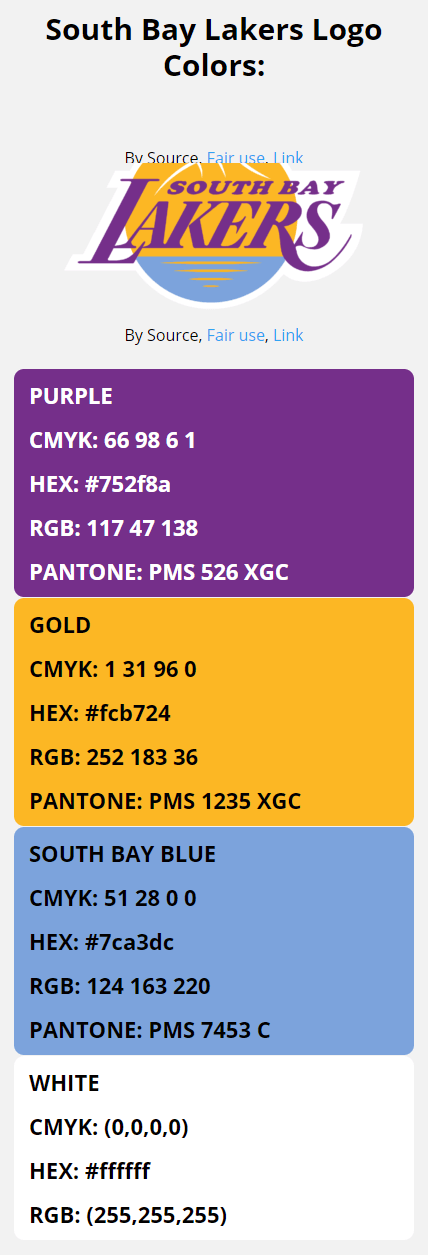 South Bay Lakers Team Colors | HEX, RGB, CMYK, PANTONE COLOR CODES OF ...
