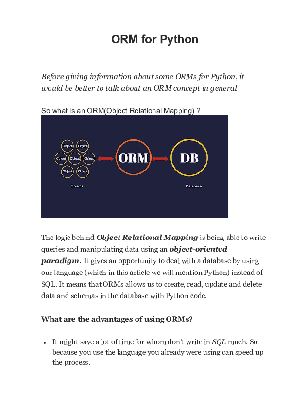 Object Relational Mapping (ORM) in Python | PDF | Relational Database ...