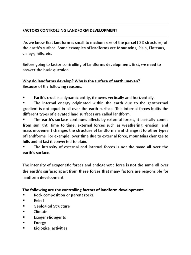 Factors Controlling Landform Development | Geography Geology | Basic ...
