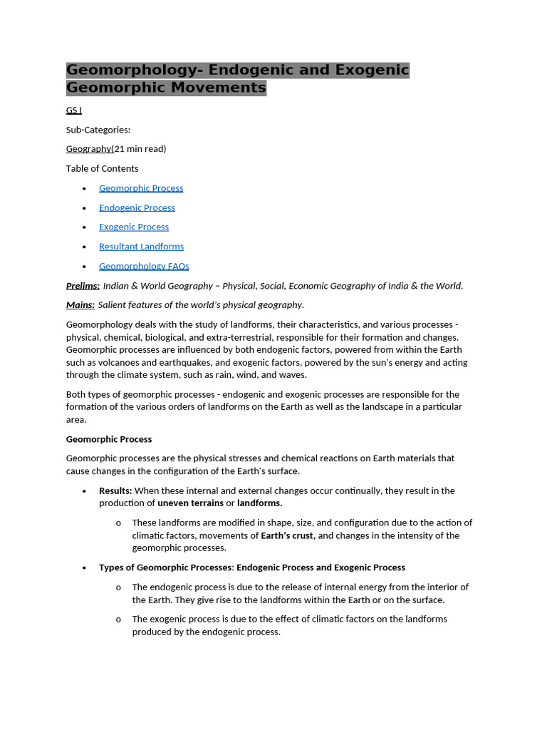 GEOMORPHOLOGYFactors Controlling Landform Development Endogenetic and ...