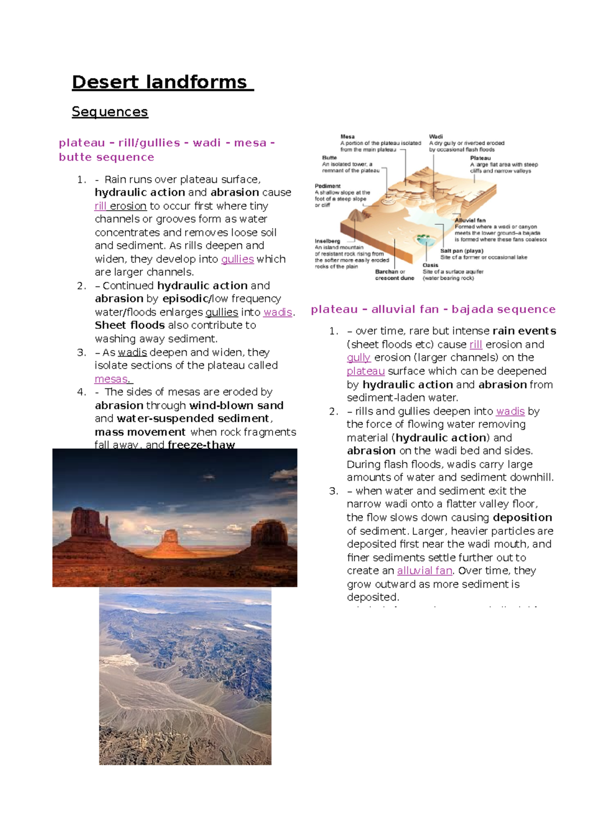 Desert Landforms: Formation of Mesas, Buttes, Wadis, and More - Studocu