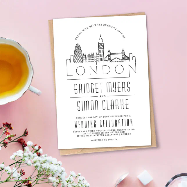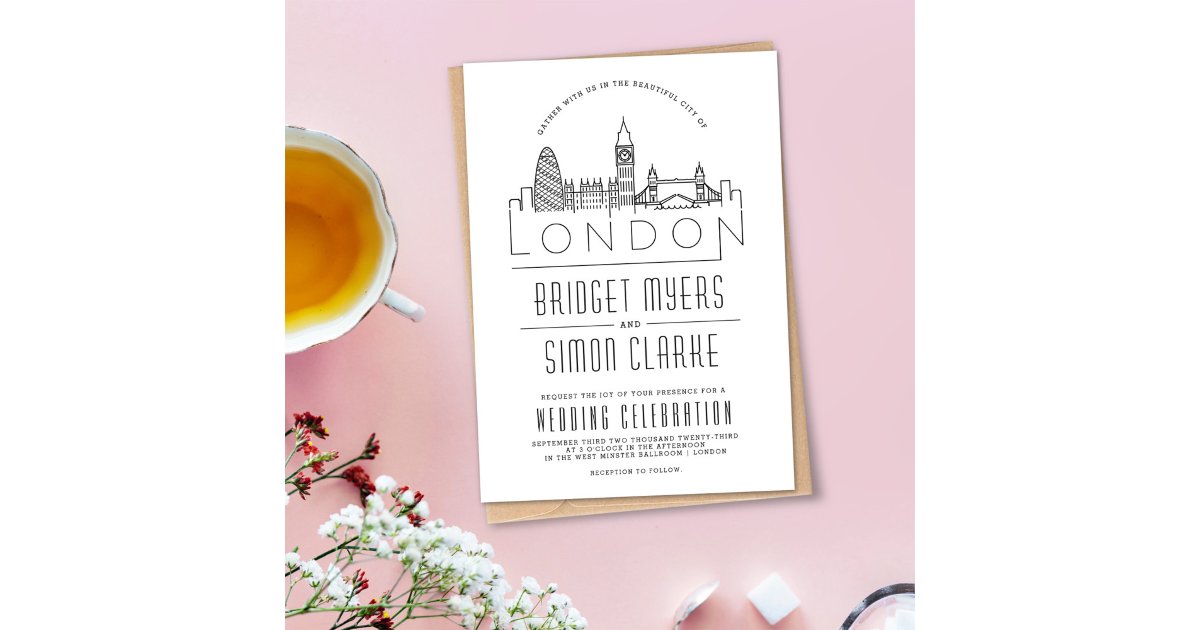 London Wedding | Landmarks Stylized Skyline Invita Invitation | Zazzle